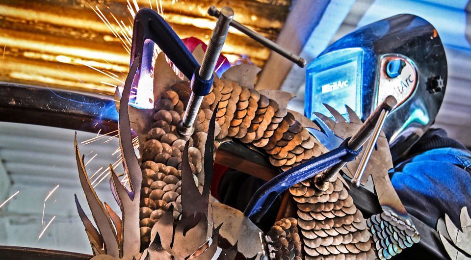 I designed and made the Dragon Moongate for Barcoose Nurseries for the 2015 Chelsea flower show. The gate was a circular design, 6 foot high and embellished layered dragon panels. Like the obelisks from the previous year, it was immersed in a salt water bath for two weeks, to give it its rusty patina before installation. The garden won gold!